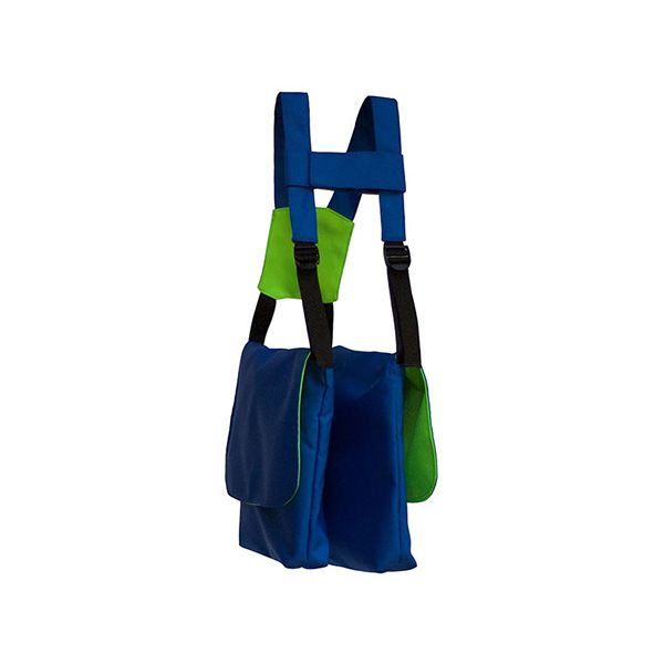 Fourth generation BackTpack for children and adults. Dual side-bag carrying system that conforms to the natural body structure to train good posture.