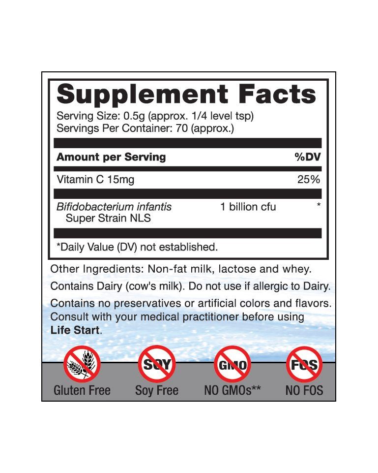 Life Start je pravi probiotik za prve dane Vaše bebe. Sadrži 2 milijarde cfu NLS soja bifido bakterija po gramu proizvoda (2.000.000.000 cfu/g).