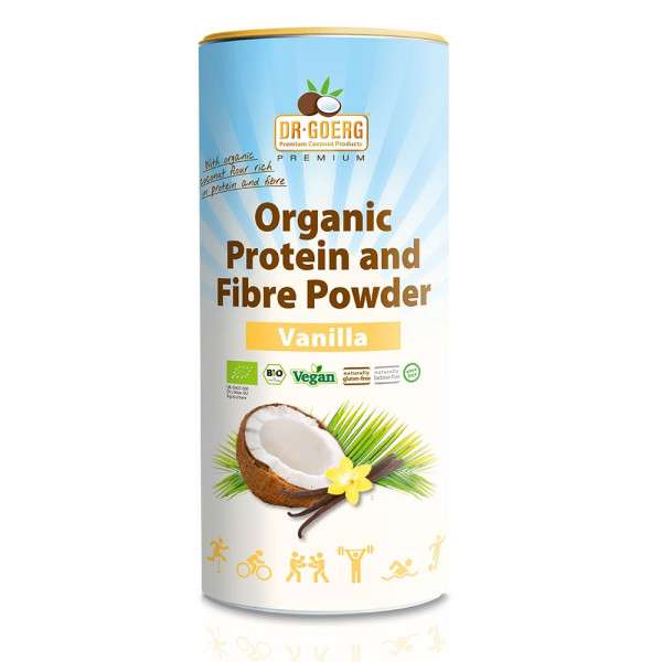 O čemu smo vodili računa? Vrlo jednostavno: samo najkvalitetnije i potpuno prirodno na popisu sastojaka – podrazumijeva se - svi sastojci potječu iz kontroliranog organskog uzgoja. S Dr. Goerg Bio-Proteinskim- prahom s visokim udjelom vlakana htjeli smo ponuditi alternativu komercijalnim proteinskim pripravcima koji najčešće sadrže umjetne zaslađivače a to smo u potpunosti uspjeli sa našim proteinskim praškom s okusom vanilije. U potpunosti je bez emulgatora, umjetnih sladila i bez industrijskog šećera nego je umjesto toga zaslađen s malo šećera kokosovog cvijeta, no i dalje s niskim udjelom šećera, tako da obrok od 30g sadrži samo 116kcal (ako se priprema s vodom). U potpunosti je veganski proizvod, bez glutena, laktoze i soje. Stoga je ovaj proteinski prašak vrlo kompatibilan s različitim načinima prehrane - veganskom, low carb ili bezglutenskom prehranom, i lako je probavljiv čak i za osobe s intolerancijama.